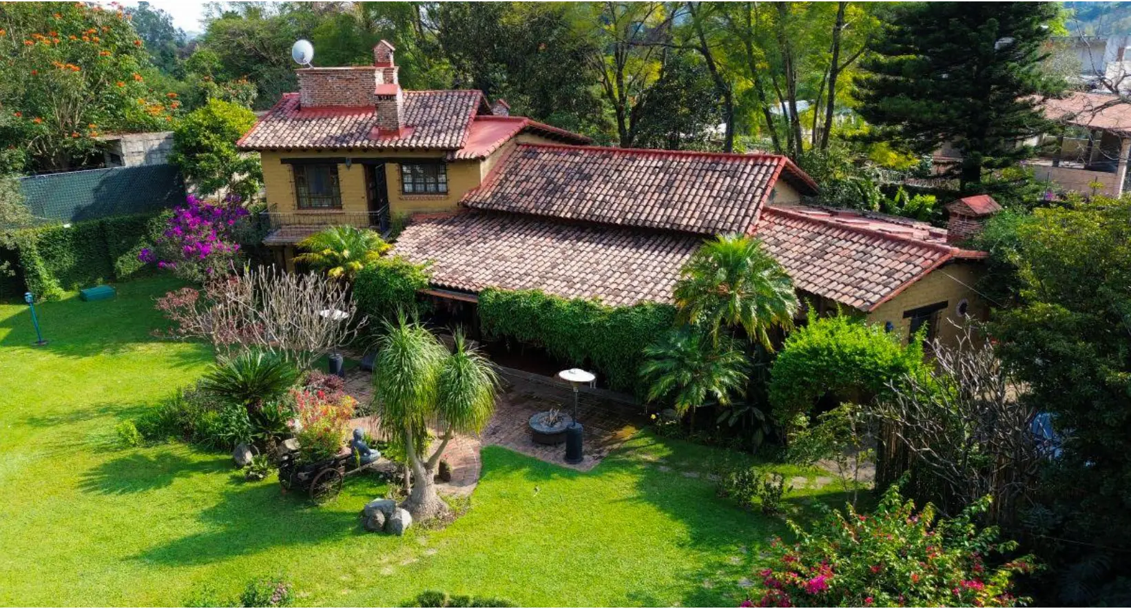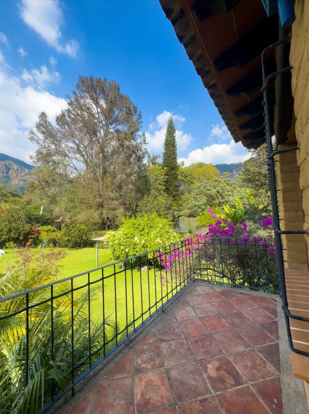 A solo una hora de la CDMX, esta casa de campo Tepoztlán ofrece privacidad, naturaleza y un jardín maduro que invita a disfrutar de cada rincón, rodeada de árboles estanques con lotos y vista a las montañas ideal para un estilo de vida exclusivo.