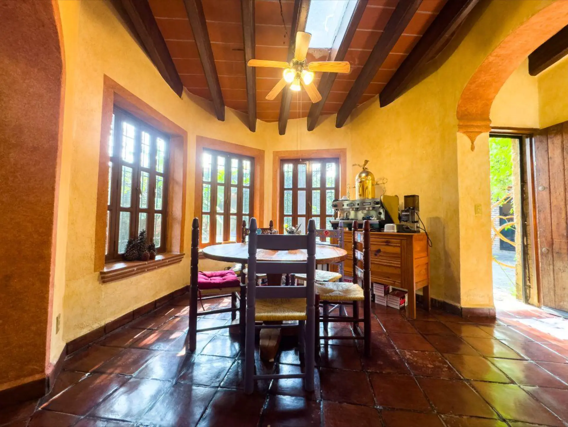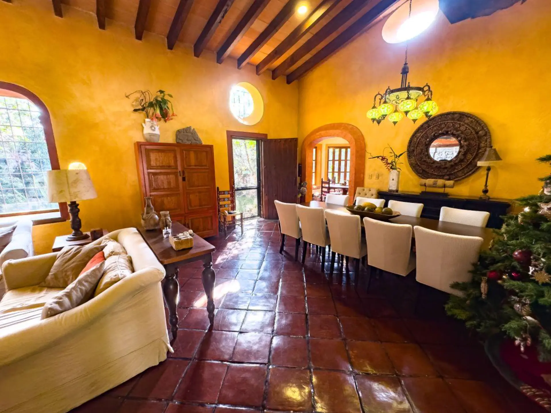 *Sala con chimenea, comedor y